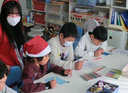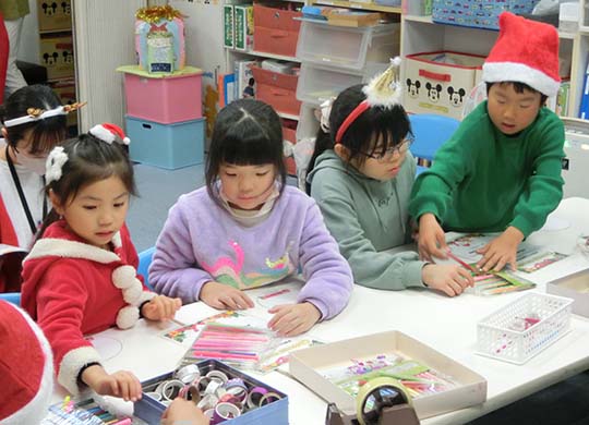 Merry Christmas!! みんなでいろんなゲームをしました♪ クリスマスのクイズで盛り上がったり、箱の中身あてゲームをしたり、 楽しいクリスマスウィークでしたね♡ クリスマスカードも、みんなとっても上手でした! (By Risa先生)